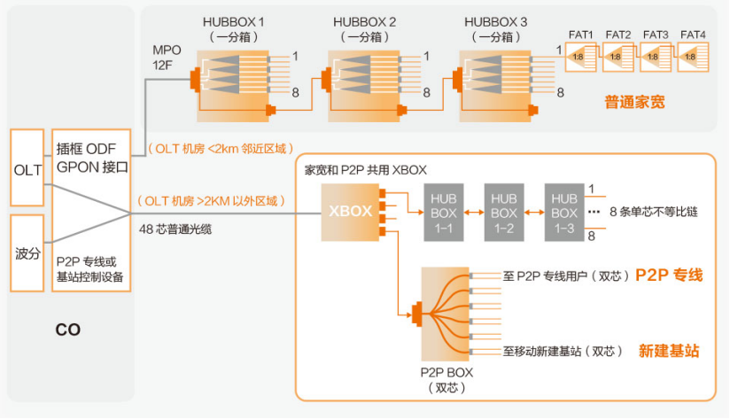 通過ODN 3.0解決方案提供的P2P BOX可以直接輸出雙芯光纜到P2P專線用戶和移動基站,特別適合綜合運營商進行網(wǎng)絡(luò)布局和充分利用骨干光纜資源。