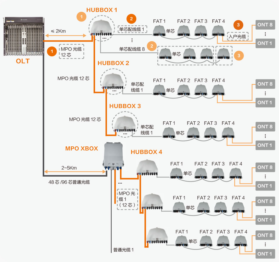 HUBBOX首先要明確其容量,該HUBBOX最多連接多少個FAT,比如每個HUBBOX可以覆蓋8組FAT,每組是4個FAT,那么HUBBOX的位置就是要距這8組FAT的平均距離最短,位置適中。