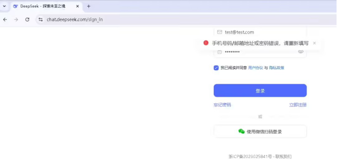 在偽造的登錄頁面,即便用戶輸入正確的用戶名和密碼,頁面也會(huì)提示用戶名或密碼錯(cuò)誤。用戶名和密碼信息將會(huì)被發(fā)送至 https://chat.deepseek.com/ api / v0 / users / login 接口中,并且該登錄頁面會(huì)不斷獲取當(dāng)前瀏覽器版本等信息。